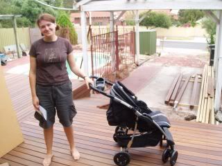 A week or so ago we bought a stroller from ebay. It arrived today, and here is a picture of the mother-to-be looking like she didn't want me to take her photo with the stroller.